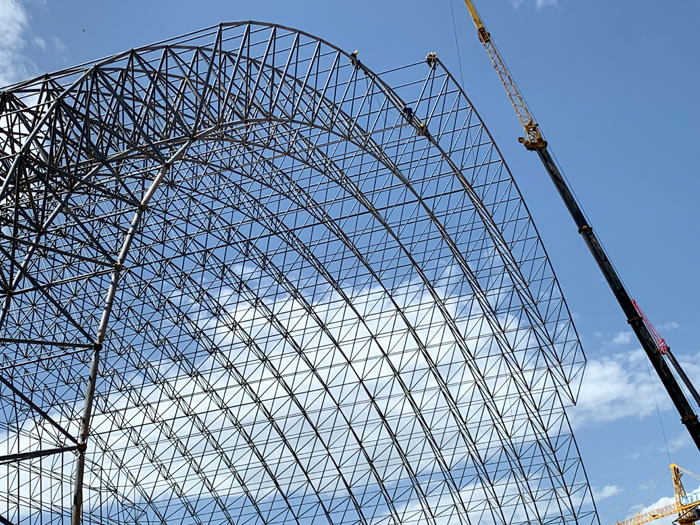 (2)网架加工前应对现场尺寸进行复测,确认无误后方可进行加工、安装;网架制作、运输、安装应遵守《空间网格结构技术规程》JGJ7-2010、《钢网架东阳螺栓球节点》JG/T 10-2009、《钢网架东阳螺栓球节点用高强度螺栓》 GB/T 16939-2016、《东阳钢结构东阳工程东阳施工规范》 GB50755-2012、《东阳钢结构东阳工程东阳施工质量验收标准》 GB50205-2020。